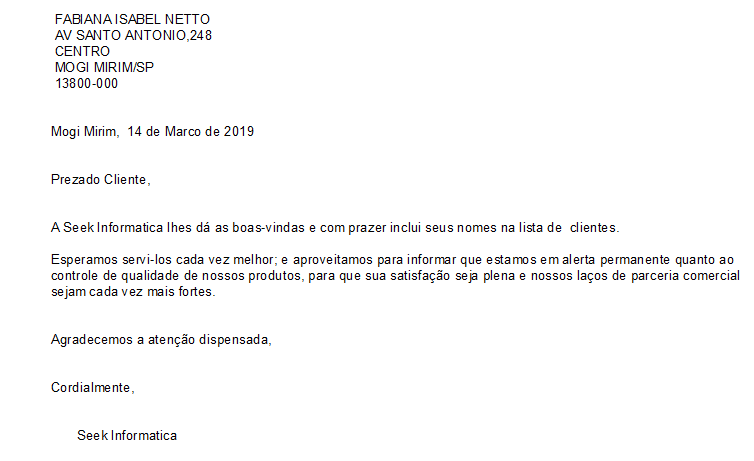 Exemplo de carta para novo cliente: